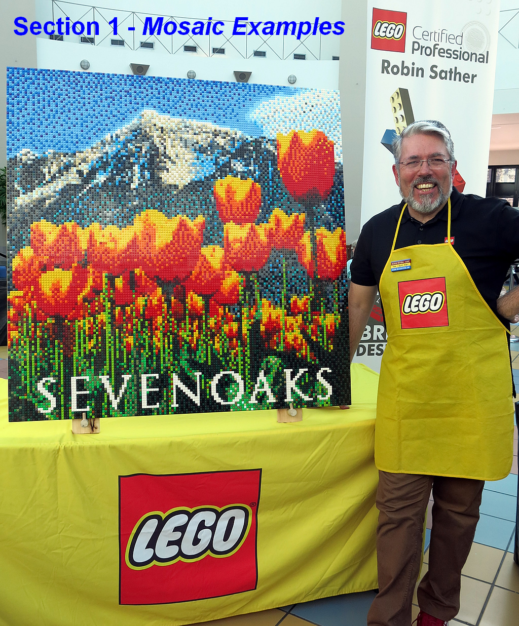- Event sponsor has commissioned many mosaics over the years, which were built at public events and are now displayed at many of their business locations. Most of these mosaics are 154cm wide by 77cm tall.