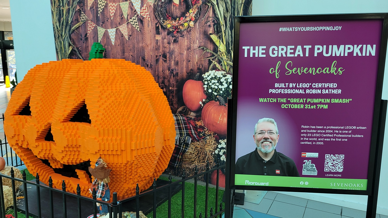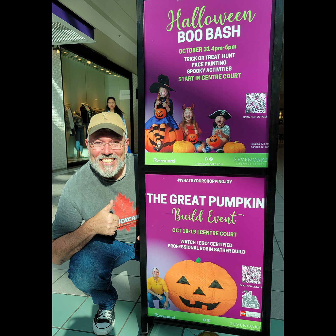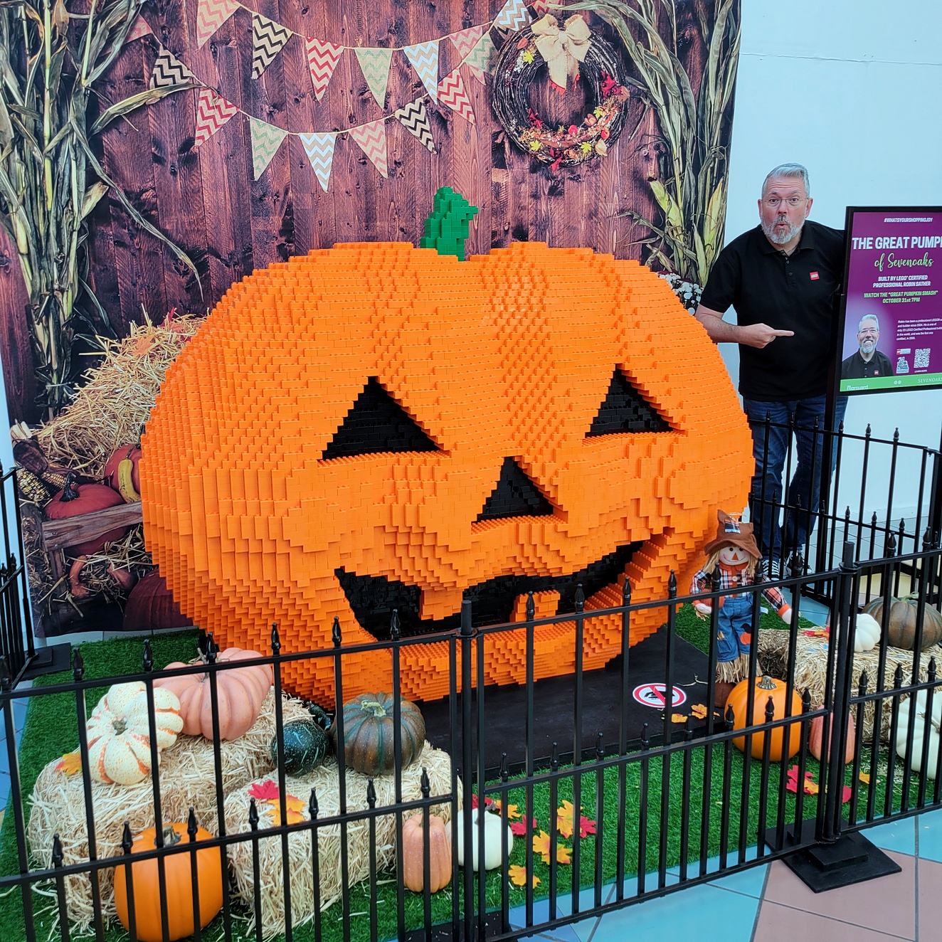 October 2024: Halloween at Sevenoaks Shopping Centre, with Robin & Lili building a giant Jack-o-Lantern! Also a cool pumpkin Make-and-Take to build and bring home! Pics at right. |