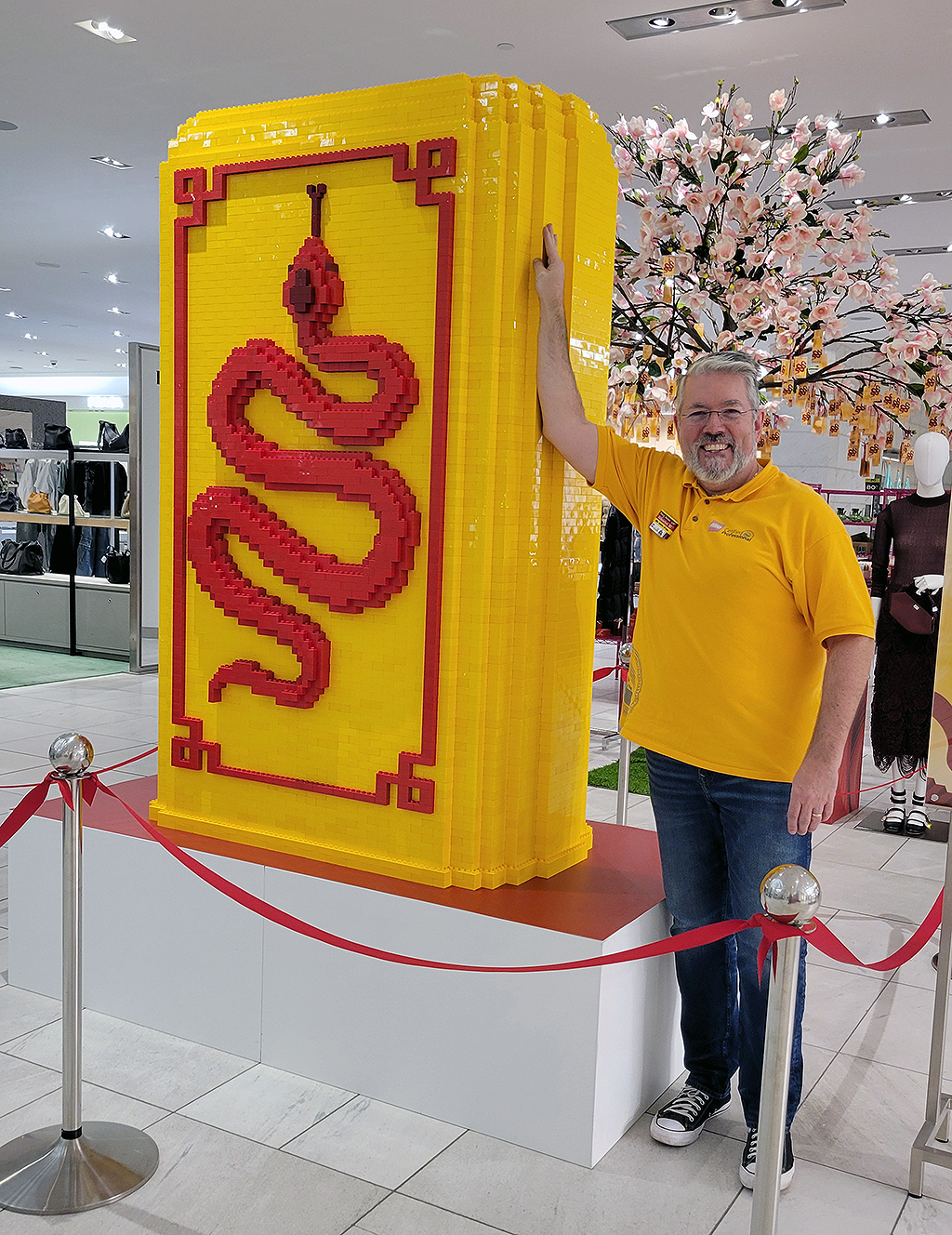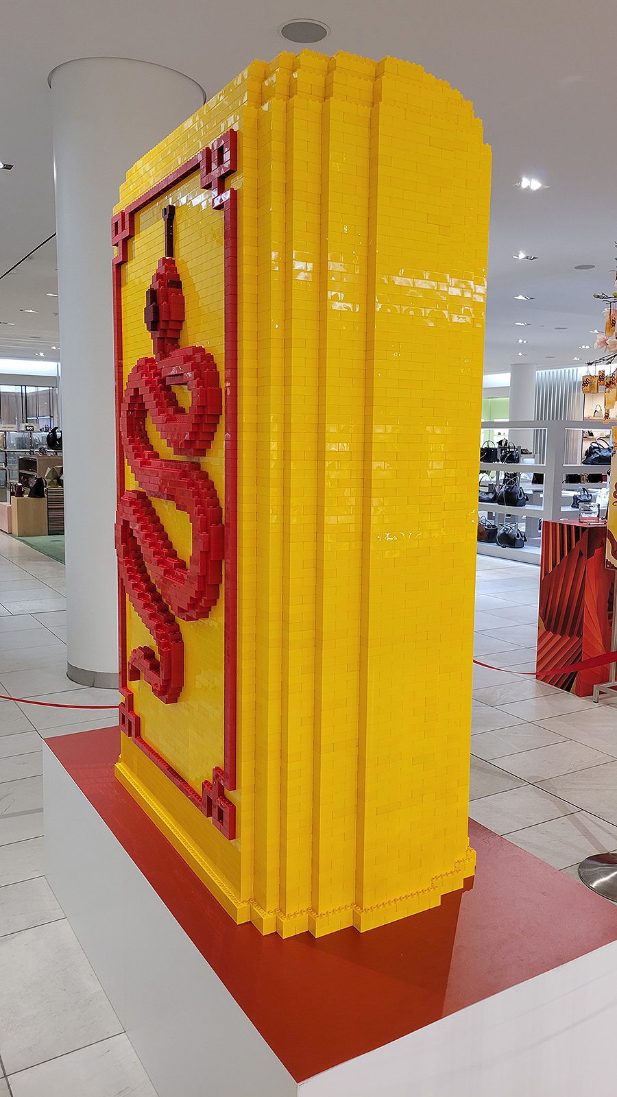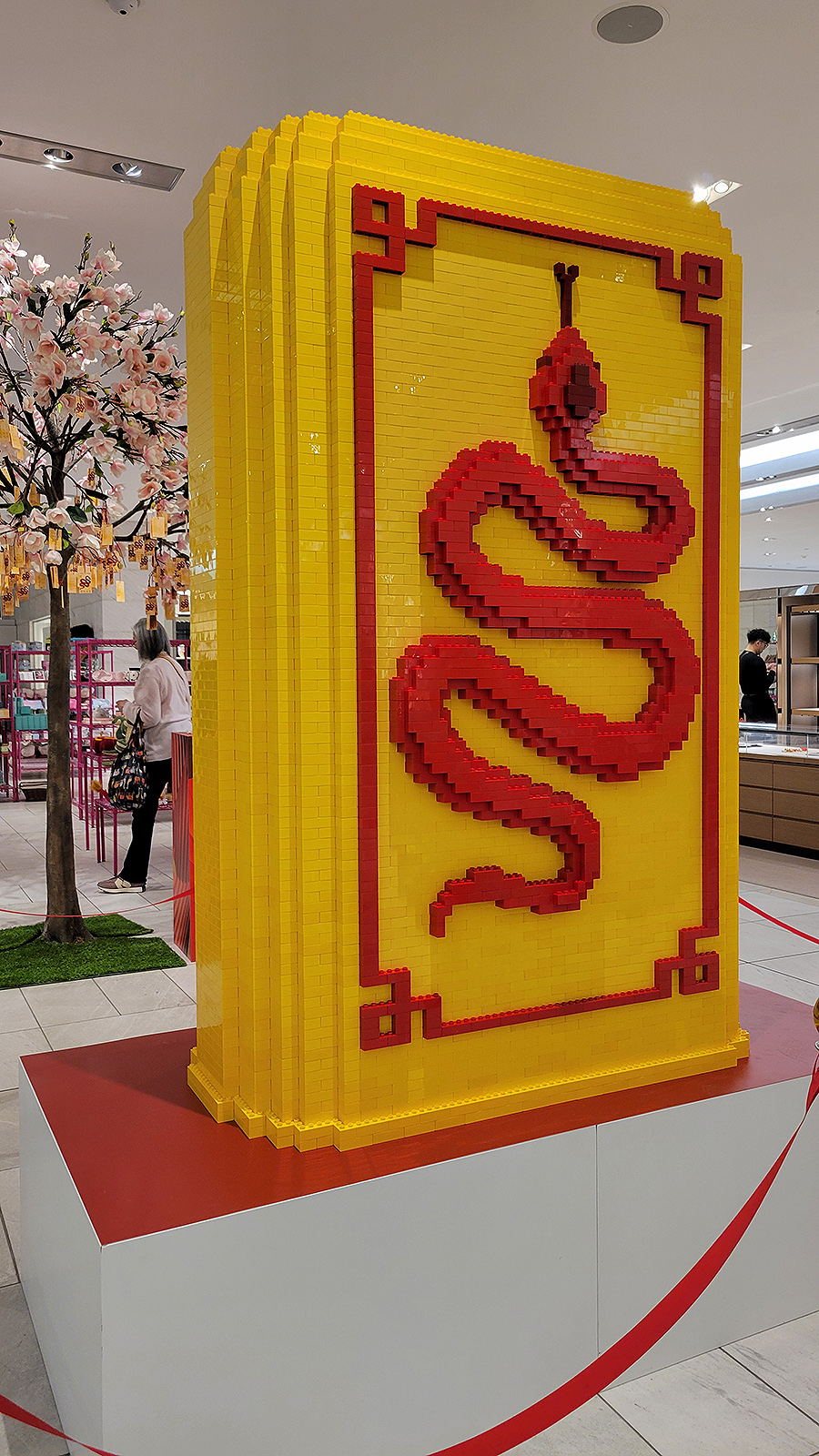 January 2025: Year of the Snake! Robin celebrated Lunar New Year with a Big Build at Holt Renfrew in downtown Vancouver. A classic pillar with a pair of climbing snakes were on display through the celebrations. Click at right for photos. |