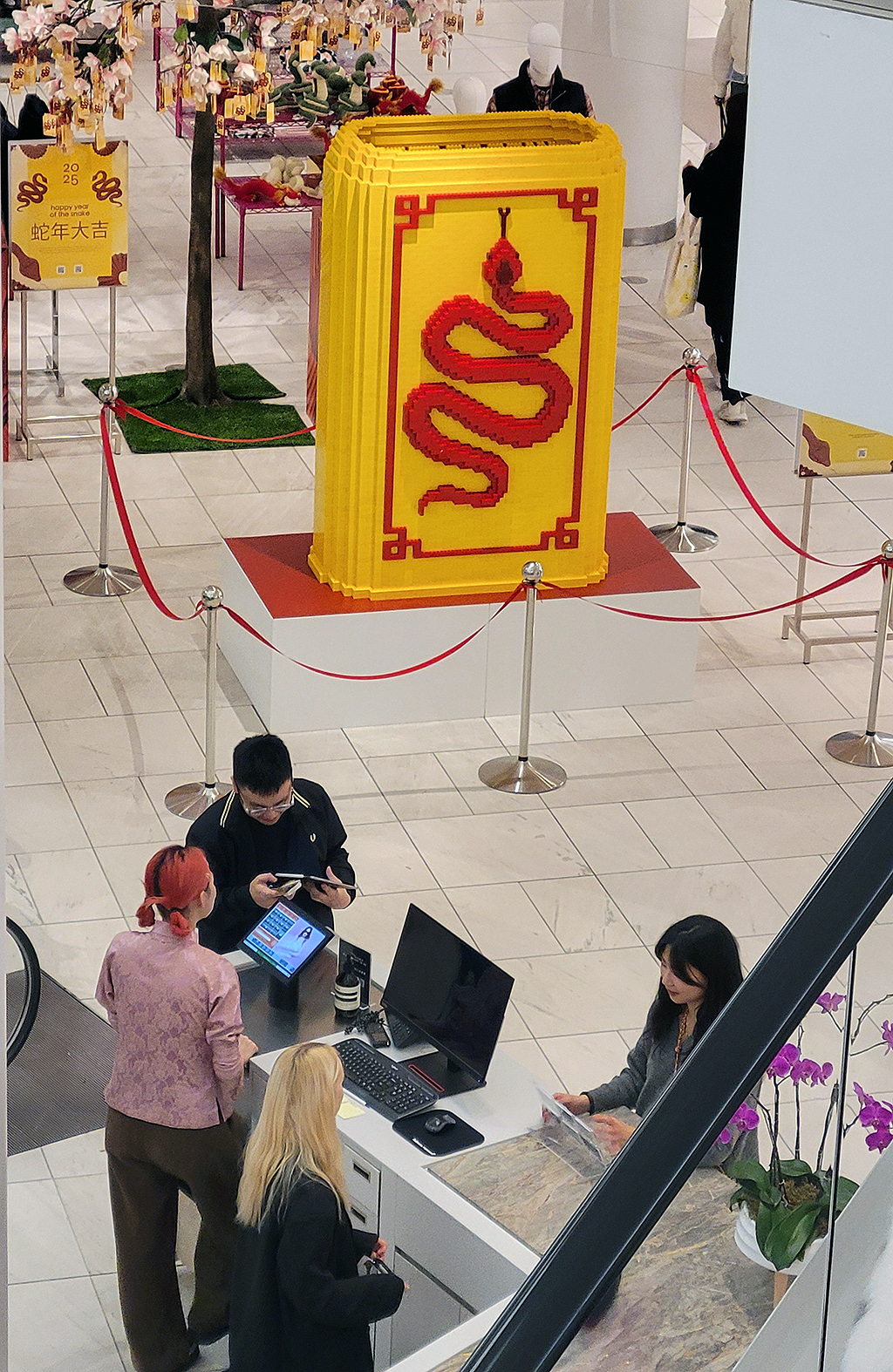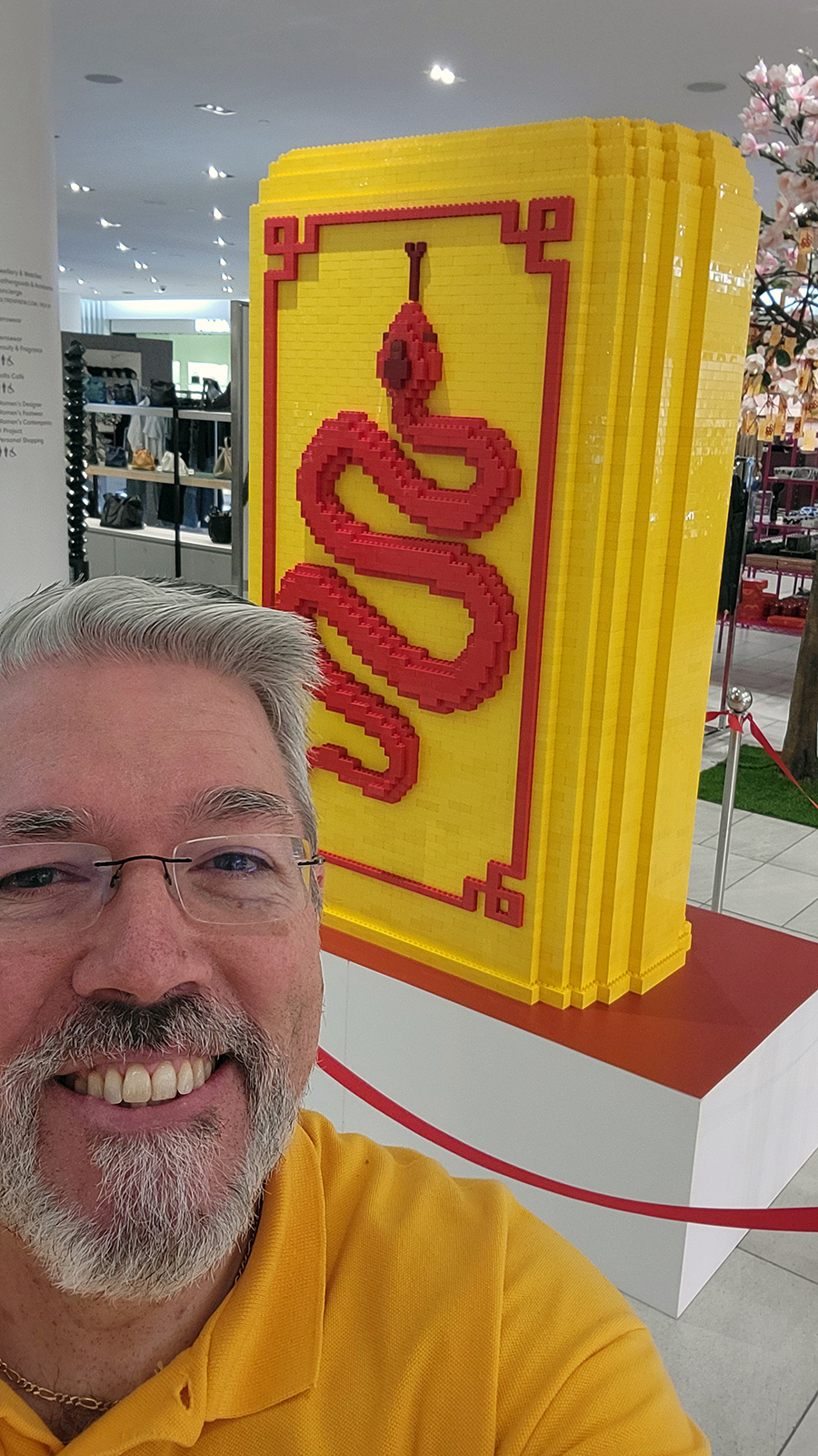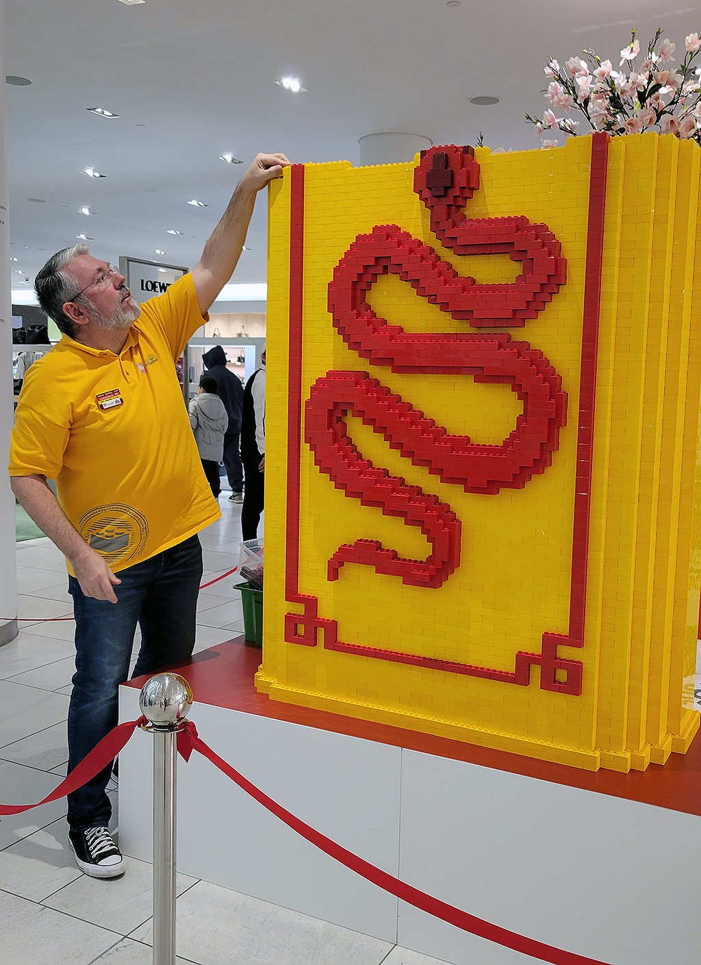 January 2025: Year of the Snake! Robin celebrated Lunar New Year with a Big Build at Holt Renfrew in downtown Vancouver. A classic pillar with a pair of climbing snakes were on display through the celebrations. Click at right for photos. |