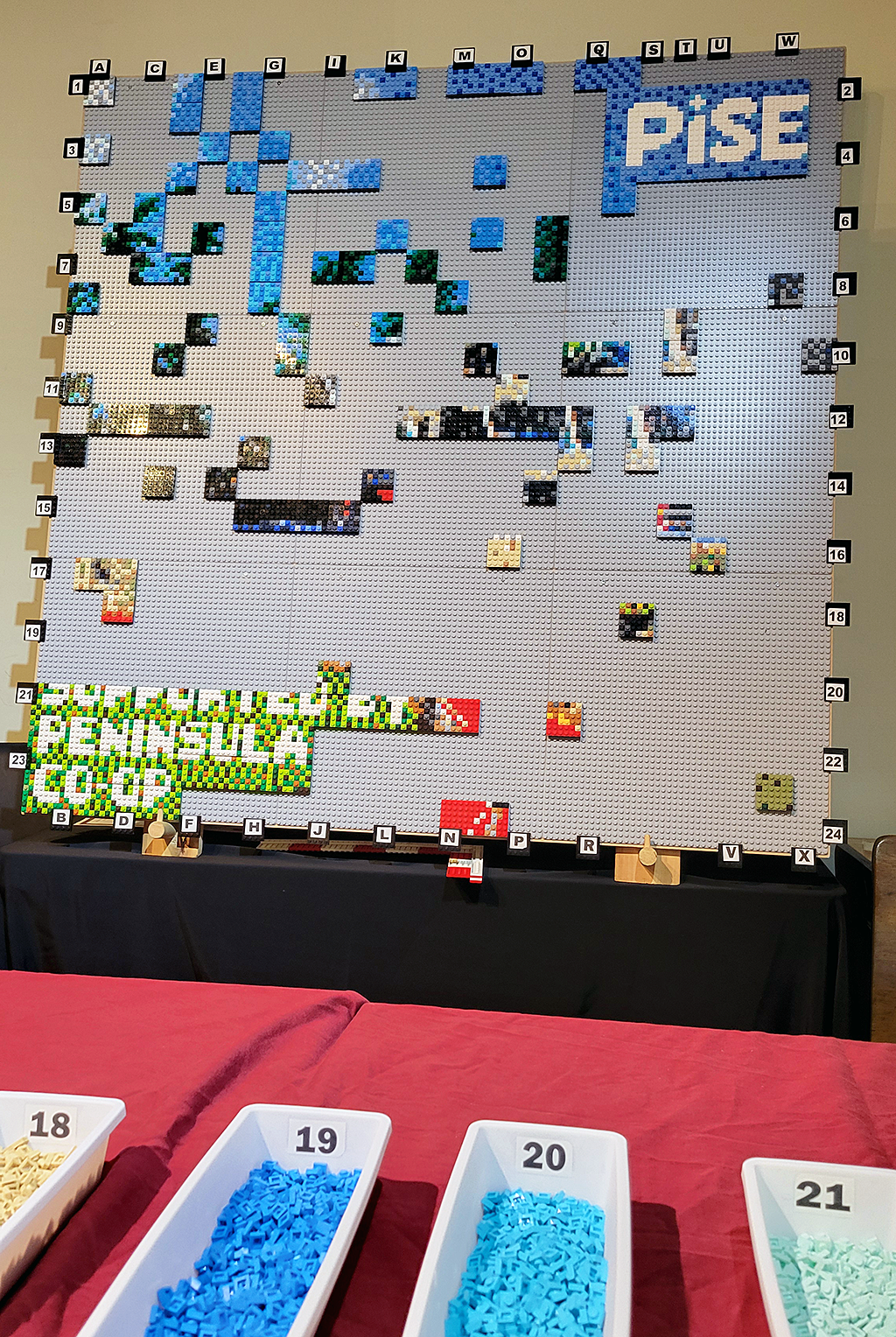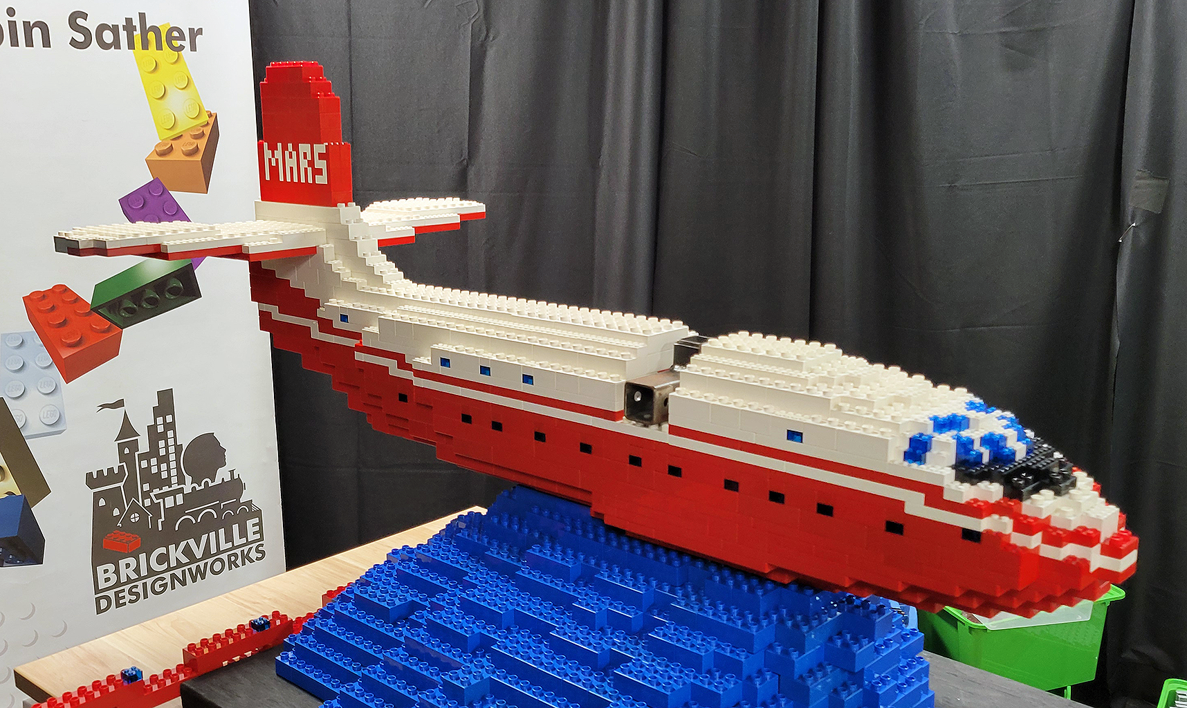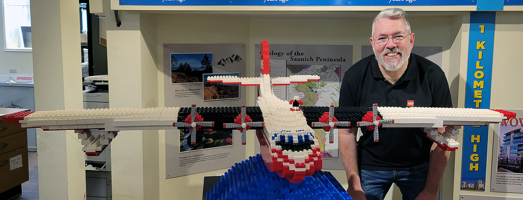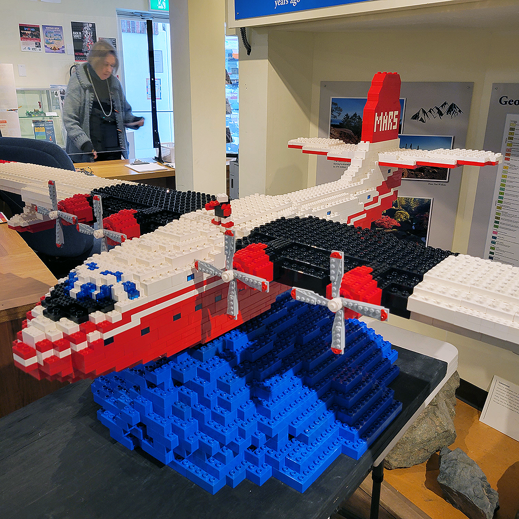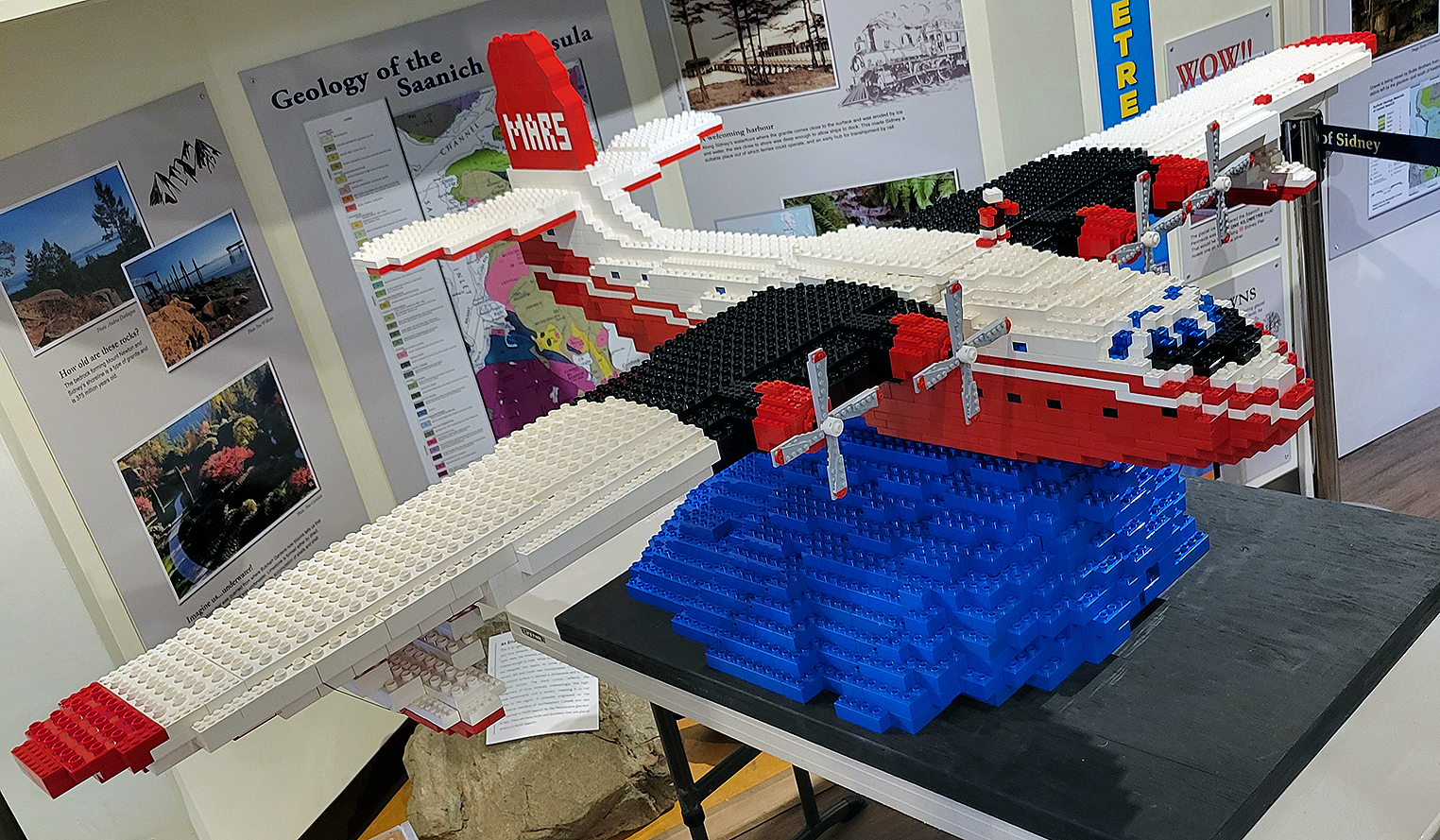 February 2025: Family Day weekend at Sidney Museum and Robin was back for his annual Big Build, and more! This year it was the giant Hawaii Mars airplane, now housed at the BC Aviation Museum. Robin created a new gift model for museum donors, and everyone also participated in building another LEGO mosaic, sponsored once again by Peninsula Co-op. They also sponsor PISE and this year's mosaic was made to display there. Lots of photos at right. |