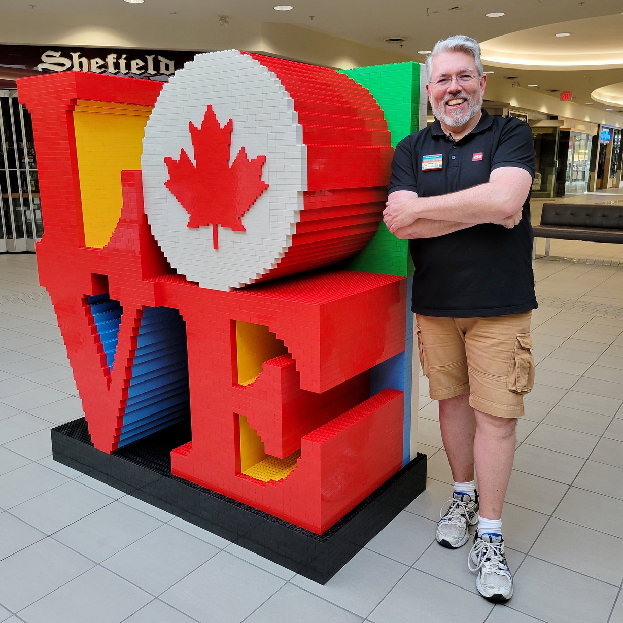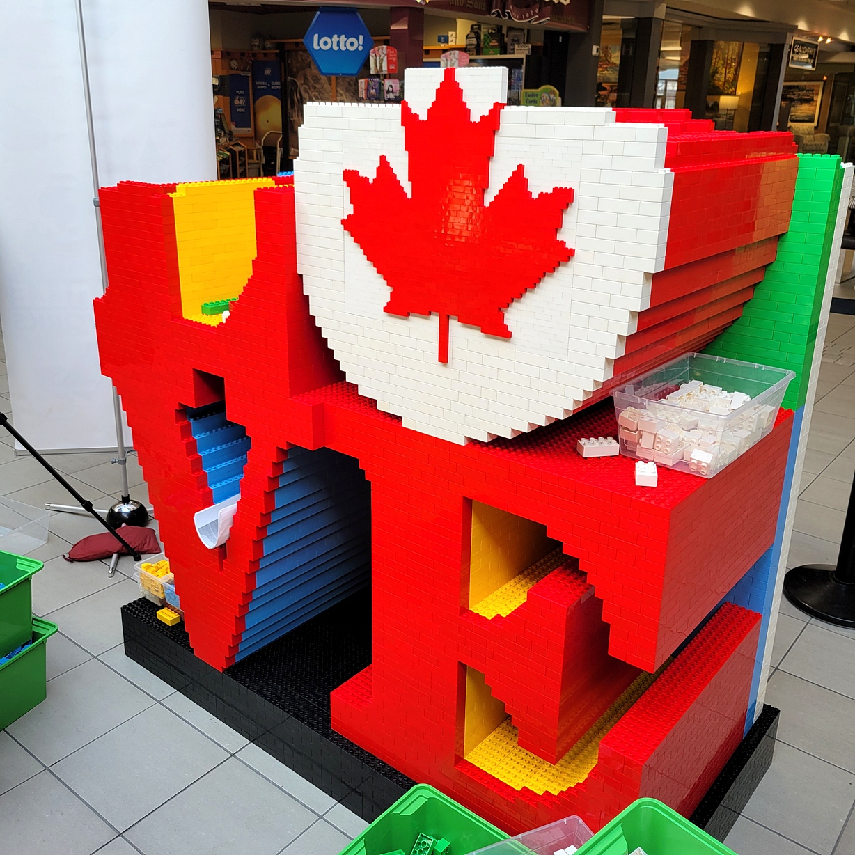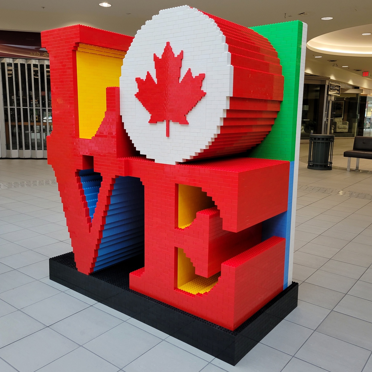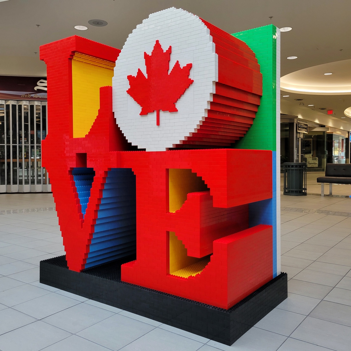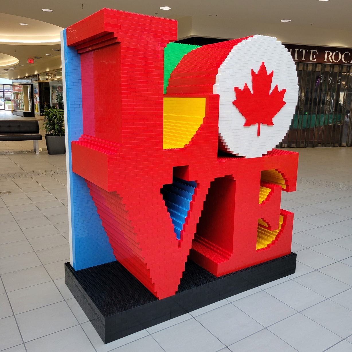 March 2025: First time to Semiahmoo Shopping Centre to celebrate spring's arrival, and show some love for Canada! Robin and crew were on hand with building opportunities, challenges, and prizes for the hundreds of kids that came to play. Robin created a 5/6th scale version of the famous 'LOVE' sculpture, with spring colours, and a Canadian flavour. Click on the photo for more. |
