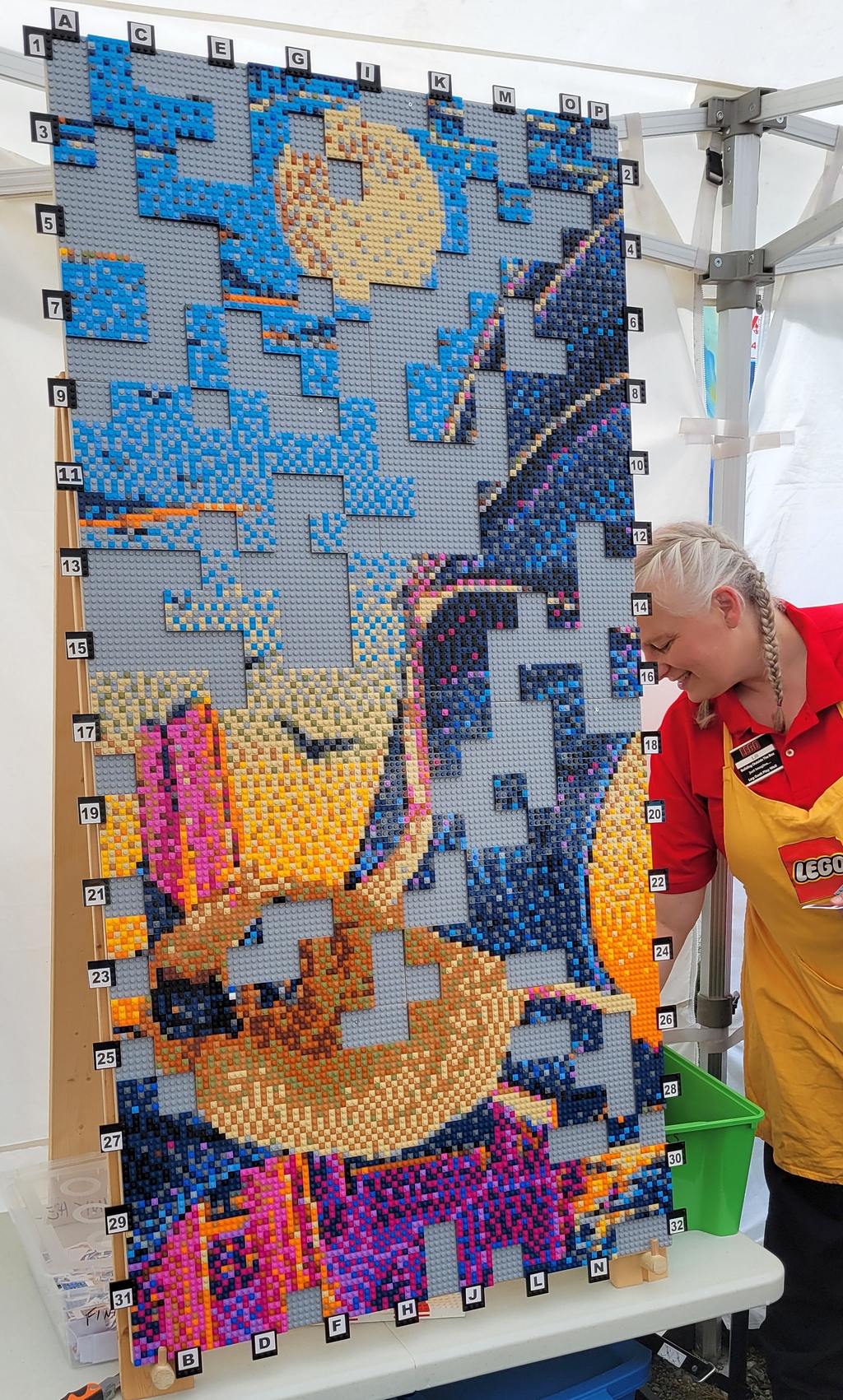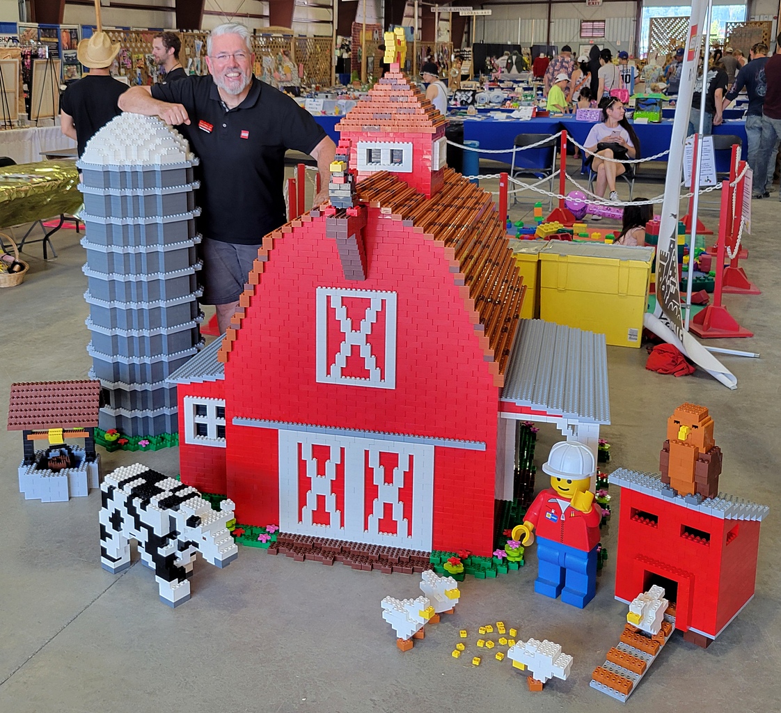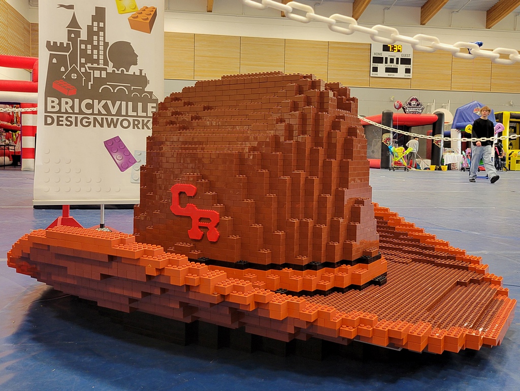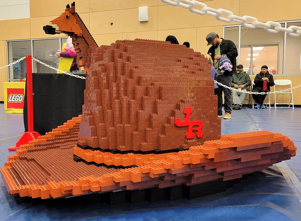 May 2024: Cloverdale Rodeo time! Robin built a giant classic cowboy boot, and created a fun Make-and-Take tractor for kids to take home. The Vancouver LEGO Club and the Fraser Valley LEGO Club were also on hand, and displayed a huge, amazing giant LEGO train layout. Photos of the Big Build at right. |