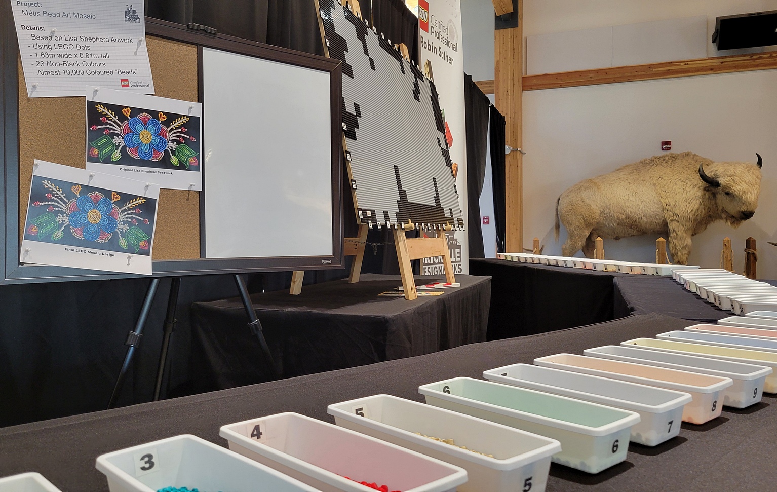 May 2025: Robin collaborated with Metis artist Metis artist Lisa Shepherd once again, to create an original LEGO beadwork mosaic piece. The mosaic was built by attendees to an amazing conference at Metis Crossing in Smoky Lake, Alberta. Click the photo for more. |