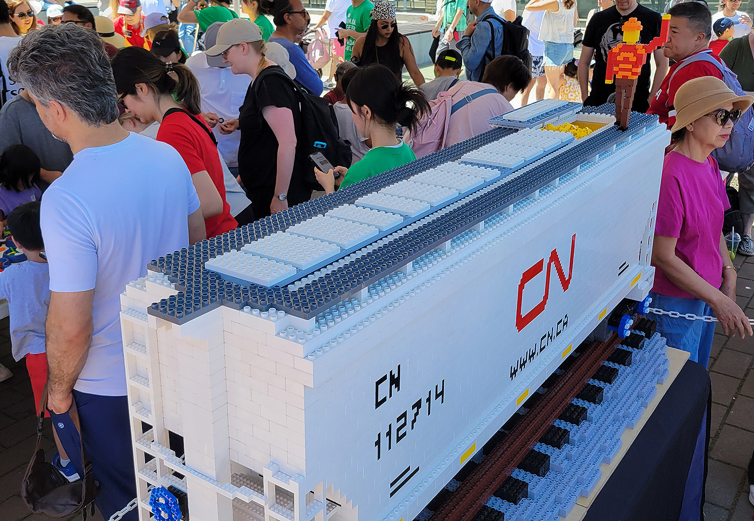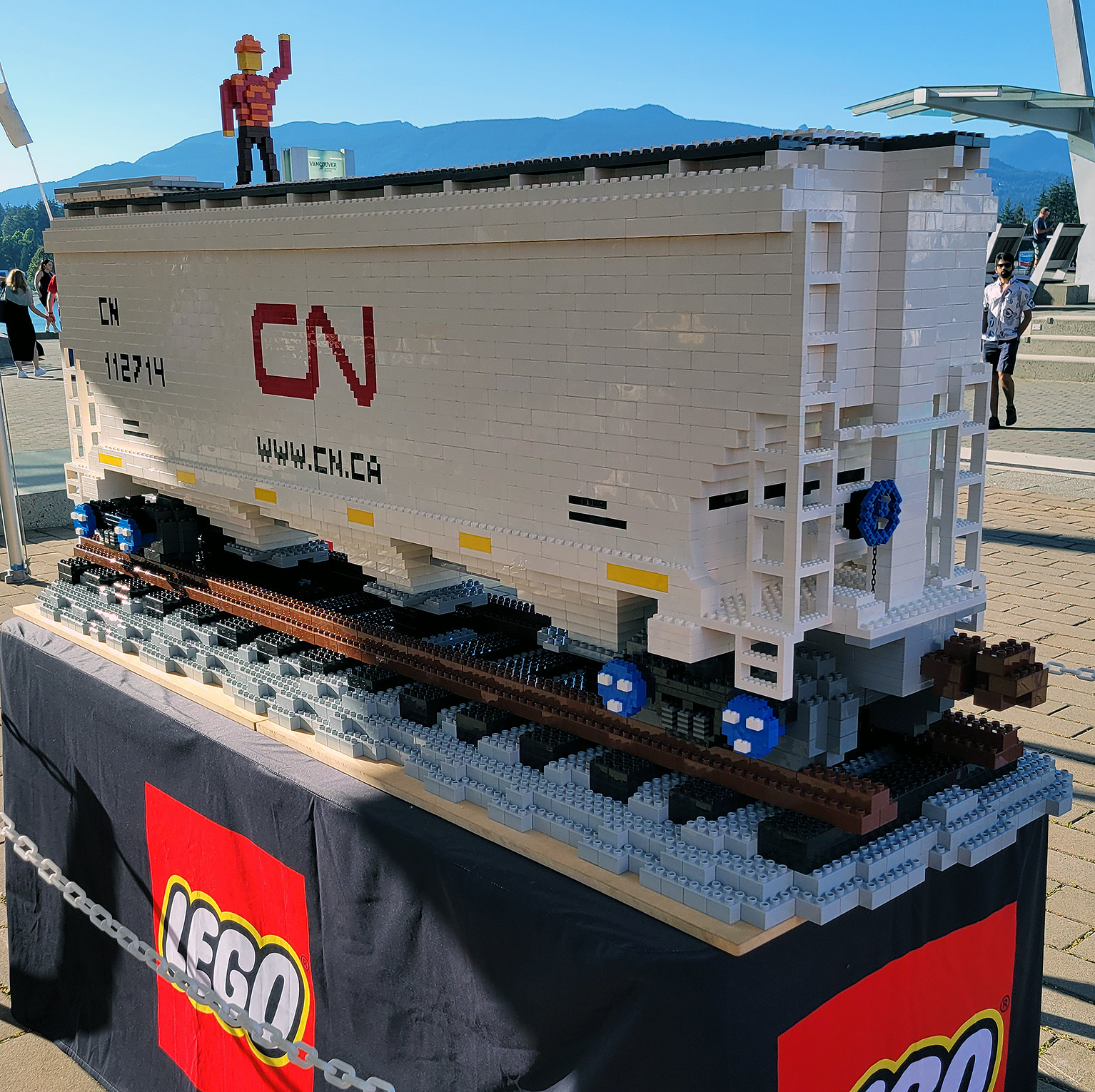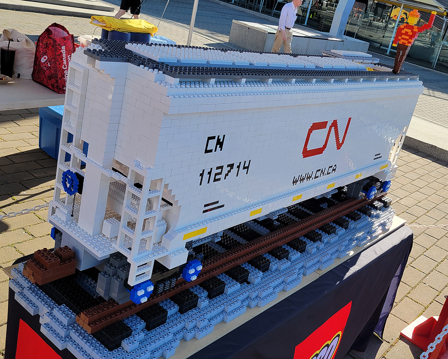 July 1, 2025: Canada Together 2025! This year, with CN Rail sponsoring again, Robin built a grain hopper car! Of course, thousands of kids (of all ages) came by to do some building, and collect some LEGO goodies. Click at right for grain car photos. |